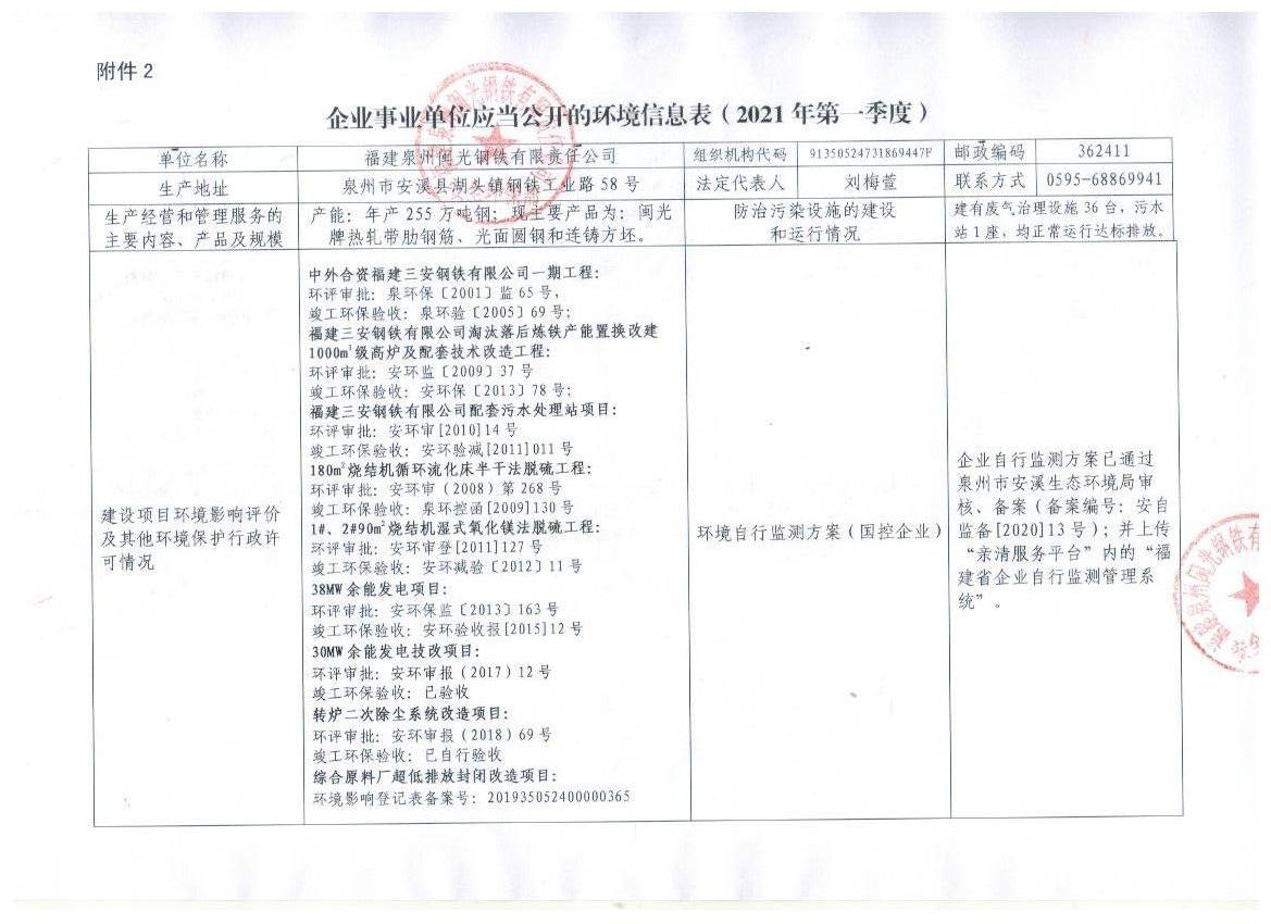 企業(yè)事業(yè)單位應(yīng)當(dāng)公開(kāi)的環(huán)境信息表(2021年度第一季度)
