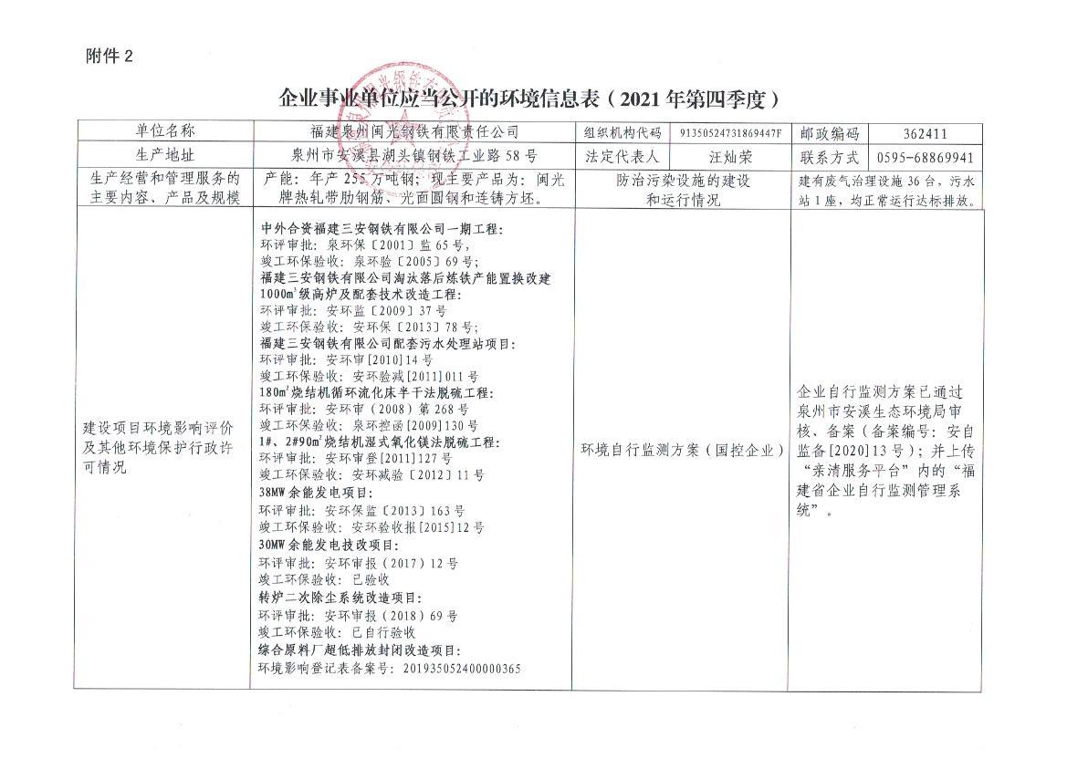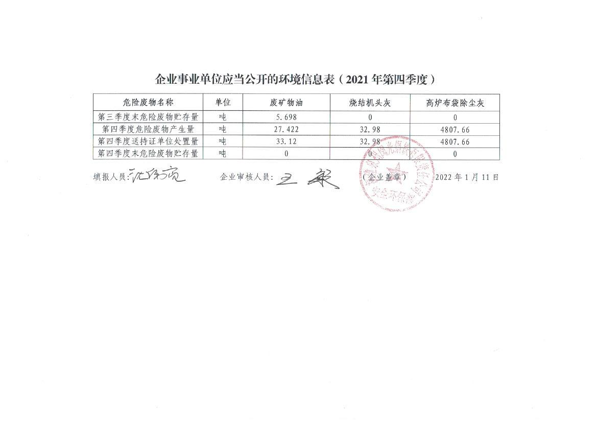 企業(yè)事業(yè)單位應(yīng)當(dāng)公開(kāi)的環(huán)境信息表(2021年度第四季度)