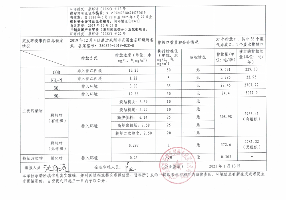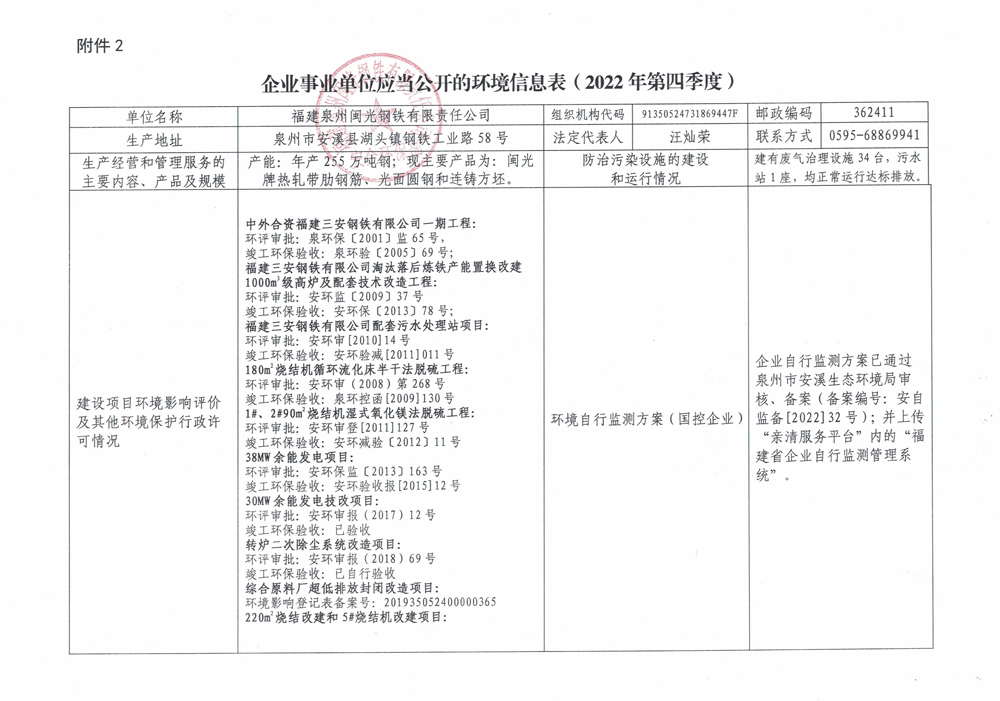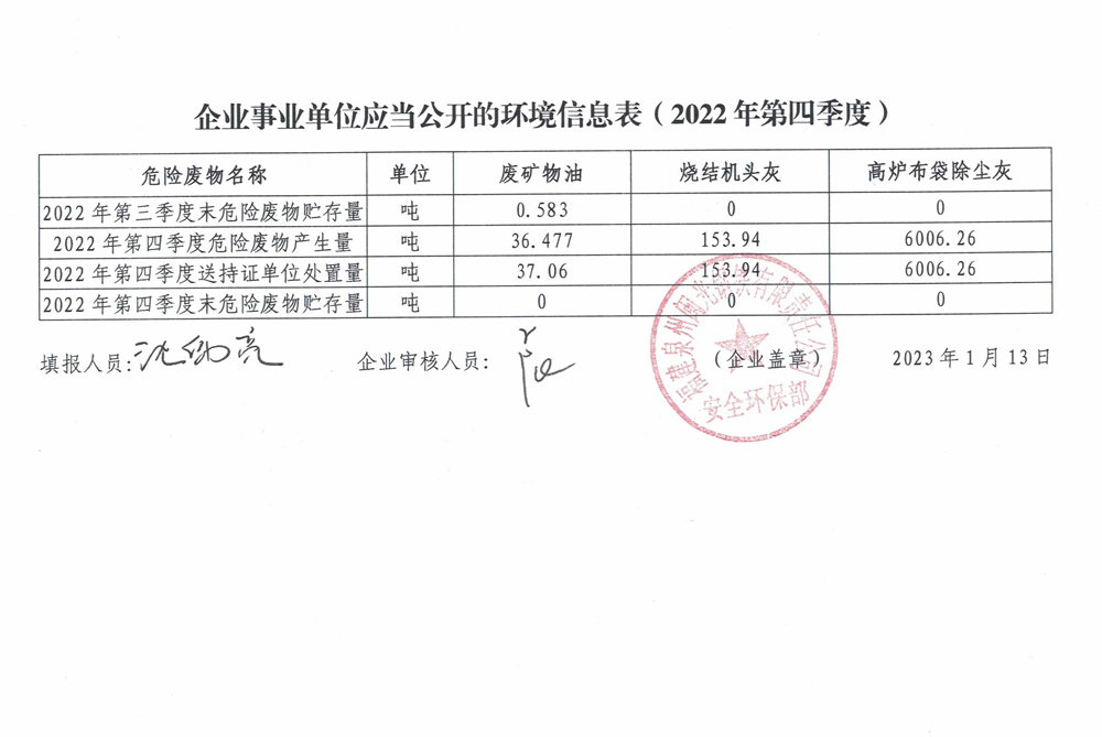 企業(yè)事業(yè)單位應(yīng)當(dāng)公開的環(huán)境信息表(2022年度第四季度)