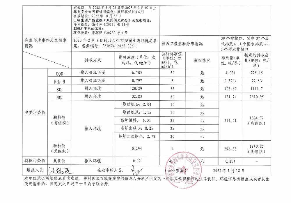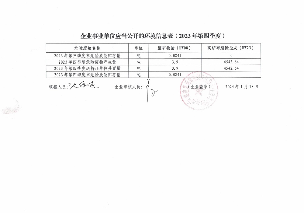 企業(yè)事業(yè)單位應(yīng)當(dāng)公開的環(huán)境信息表(2023年度第四季度)