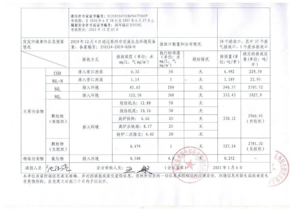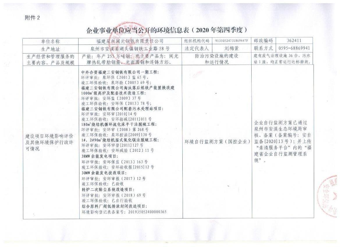 企業(yè)事業(yè)單位應(yīng)當(dāng)公開的環(huán)境信息表(2020年度第四季度)
