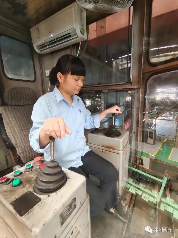 在成品庫跨,空姐們利用裝車間隙對傳動軸、車輪加油檢查,調(diào)整制動器。每當(dāng)?shù)孛孳囕v駛?cè)霂旆?,她們便立即投入到緊張的出庫作業(yè)中。她們穩(wěn)坐操作室,推動大小車控制器吊運(yùn)鋼材,將一排排鋼材平穩(wěn)地放入車廂,將精品鋼材順利出庫。