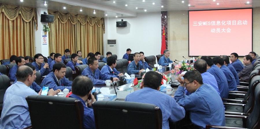 4月9日上午,公司在行政樓一樓會(huì)議室召開(kāi)了“三安MES信息化項(xiàng)目啟動(dòng)大會(huì)”,吹響了公司信息化建設(shè)的號(hào)角。公司領(lǐng)導(dǎo)張?jiān)浦?、李德輝、肖紹康、廖溢昌、胡真明及各單位領(lǐng)導(dǎo)、項(xiàng)目工作組成員等參加了會(huì)議。