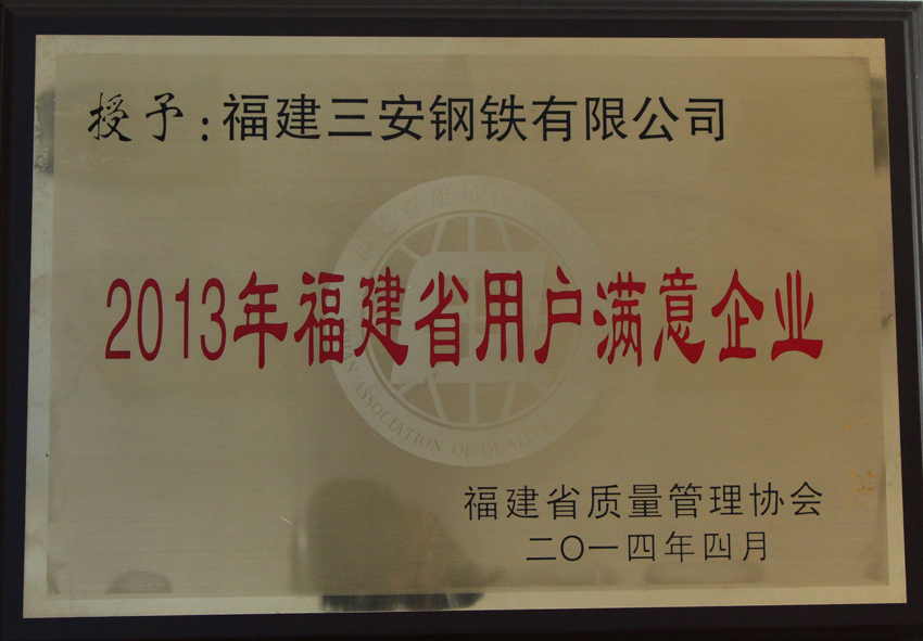 2013年福建省用戶(hù)滿(mǎn)意企業(yè)