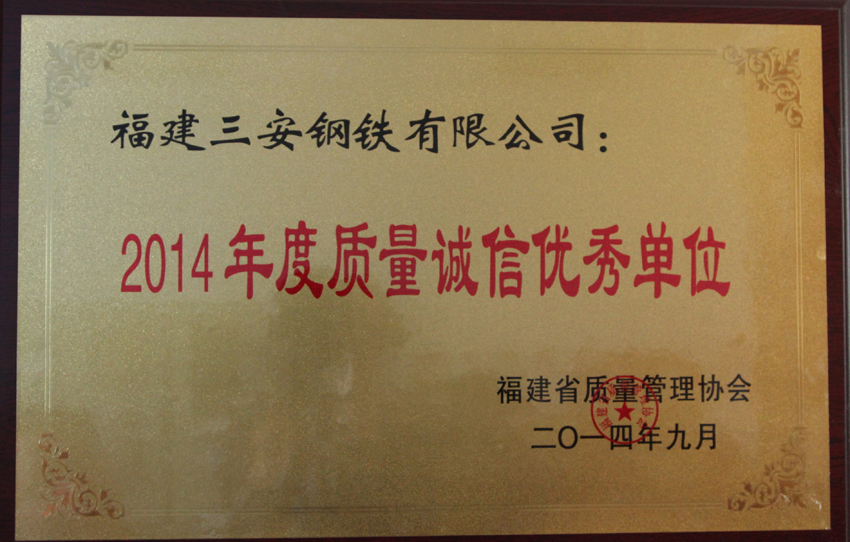 2014年度質(zhì)量誠(chéng)信優(yōu)秀單位
